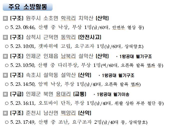 강원도 소방활동 일일상황(5. 24. 월) 06:00