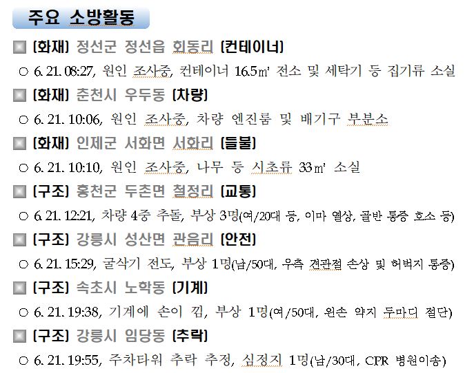 강원도 소방활동 일일상황 (6. 22. 화) 06:00