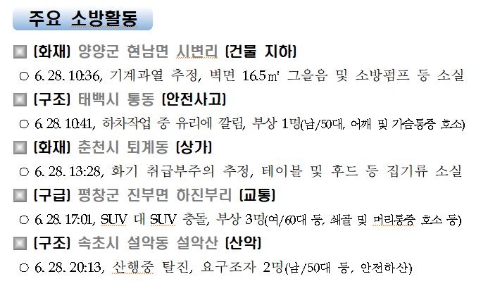 강원도 소방활동 일일상황 (6. 29. 화) 06:00