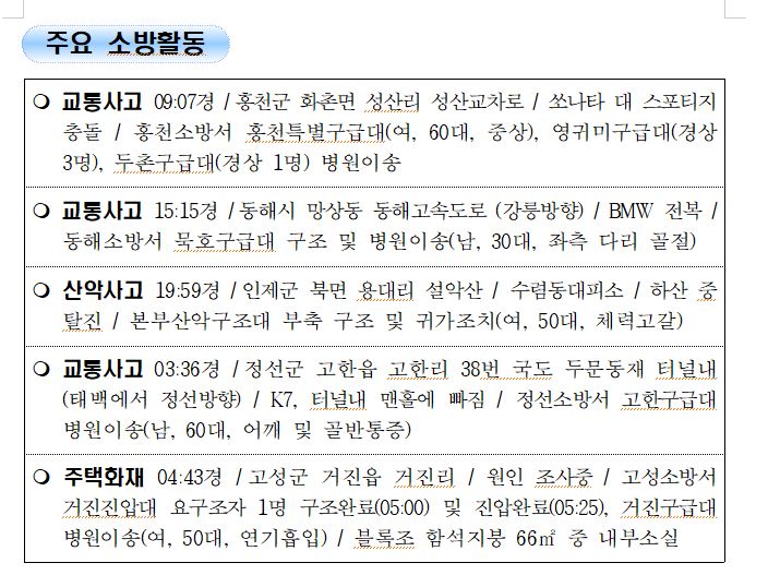 강원도 소방활동 일일상황 (8. 3. 화) 06:00