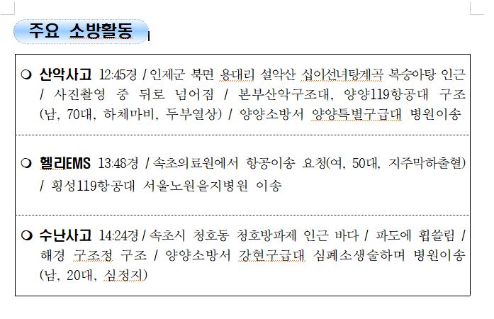 강원도 소방활동 주간상황 (8. 11. 수) 17:00