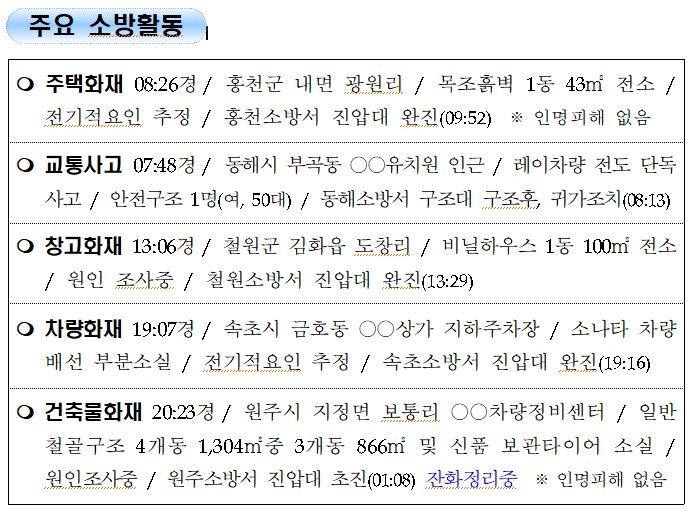 강원도 소방활동 일일상황 (8. 18. 수) 06:00