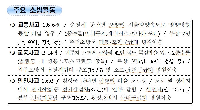 강원도 소방활동 주간상황 (10. 18. 월) 17:00
