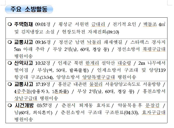강원도 소방활동 일일상황 (10. 21. 목) 06:00