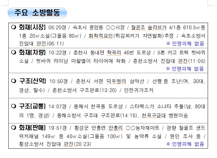 강원도 소방활동 일일상황 (11. 6. 토) 06:00