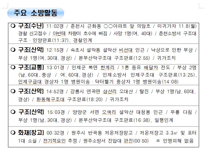 강원도 소방활동 일일상황 (11. 14. 일) 06:00
