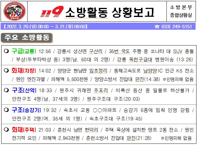 119 소방활동 상황보고(3. 21. 월) 06:00