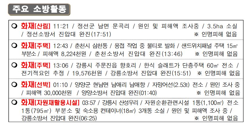 119 소방활동 상황보고(4. 12. 화) 06:00