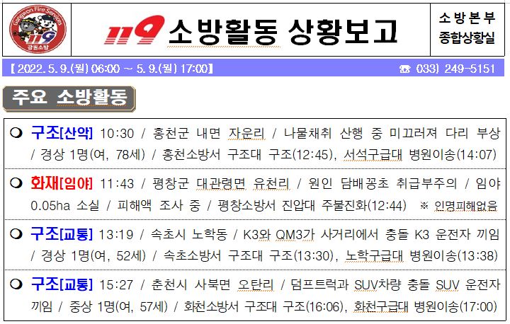 119 소방활동 상황보고(5. 9. 월) 17:00