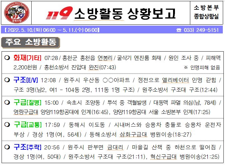 119 소방활동 상황보고(5. 11. 수) 06:00