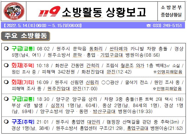119 소방활동 상황보고(5. 15. 일) 06:00