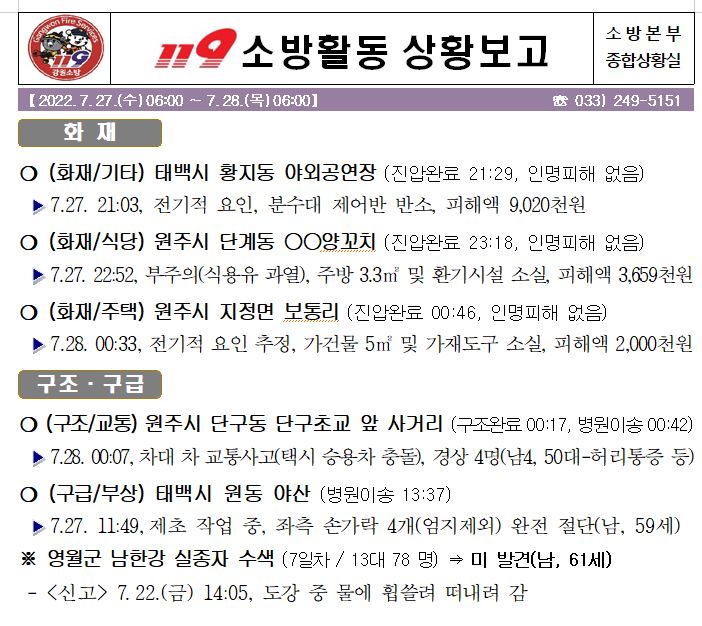 119 소방활동 상황보고(7. 28. 목) 06:00