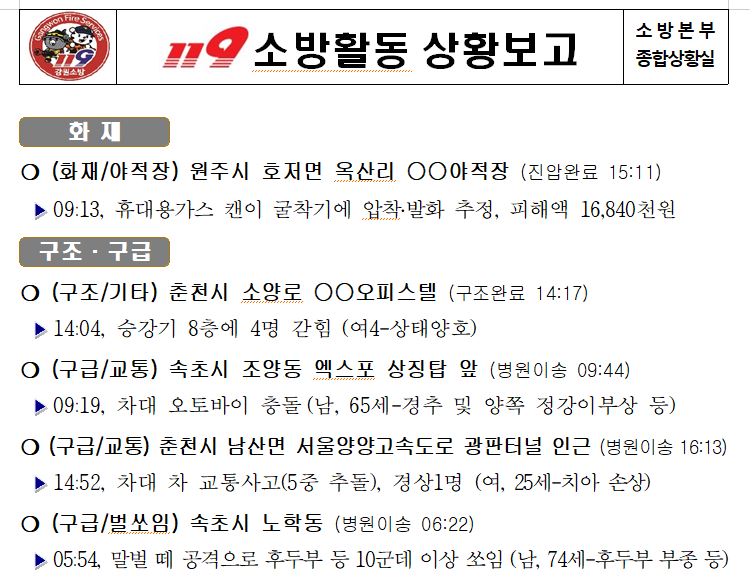 119 소방활동 상황보고(8. 19. 금) 17:00