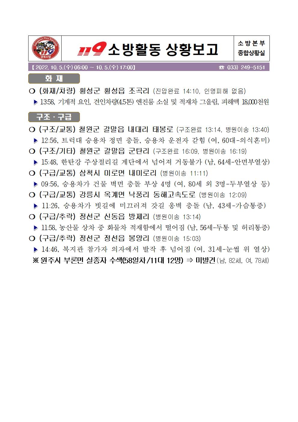 119 소방활동 상황보고(10. 05. 수) 17:00