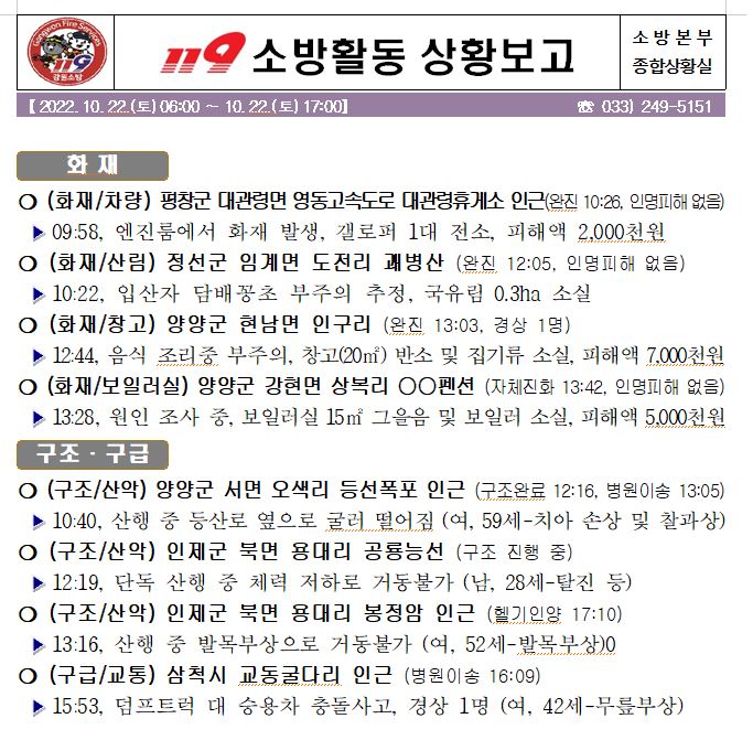 119 소방활동 상황보고(10. 22. 토) 17:00