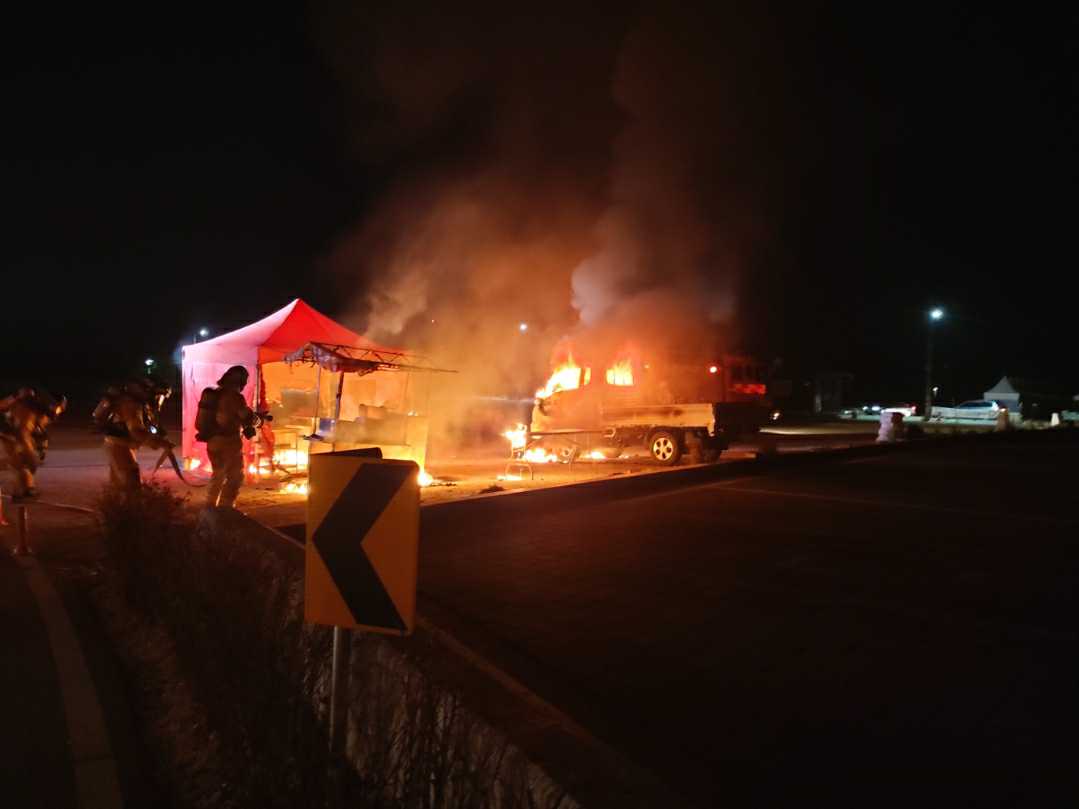 05:58, 방화 추정, 1톤 화물 및 포장마차 전소, 피해액 12,000천원