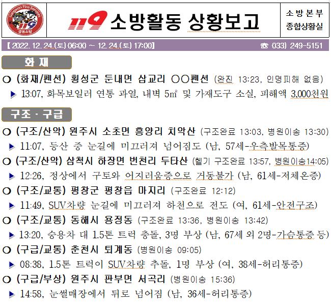 119 소방활동 상황보고(12. 24. 토) 17:00