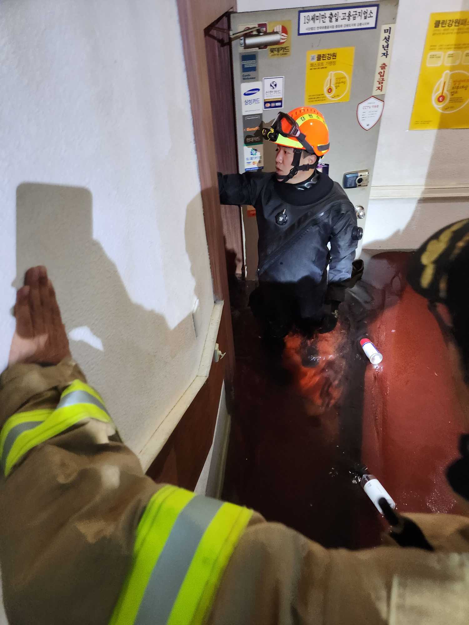 강릉시 지하1층 노래방 침수 및 익사사고 발생