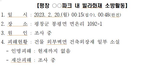 평창 00파크 빌라화재 개요