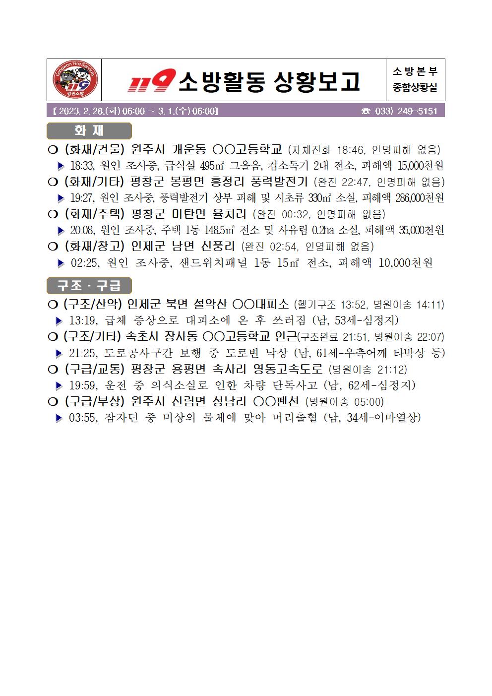 119 소방활동 상황보고(2. 28. 화) 17:00