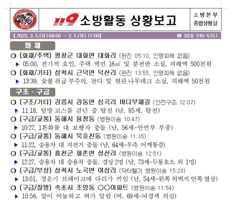 119 소방활동 상황보고(3. 5. 일) 17:00