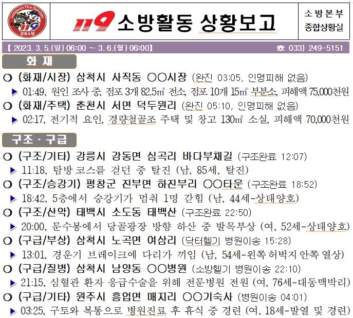 119 소방활동 상황보고(3. 6. 월) 06:00