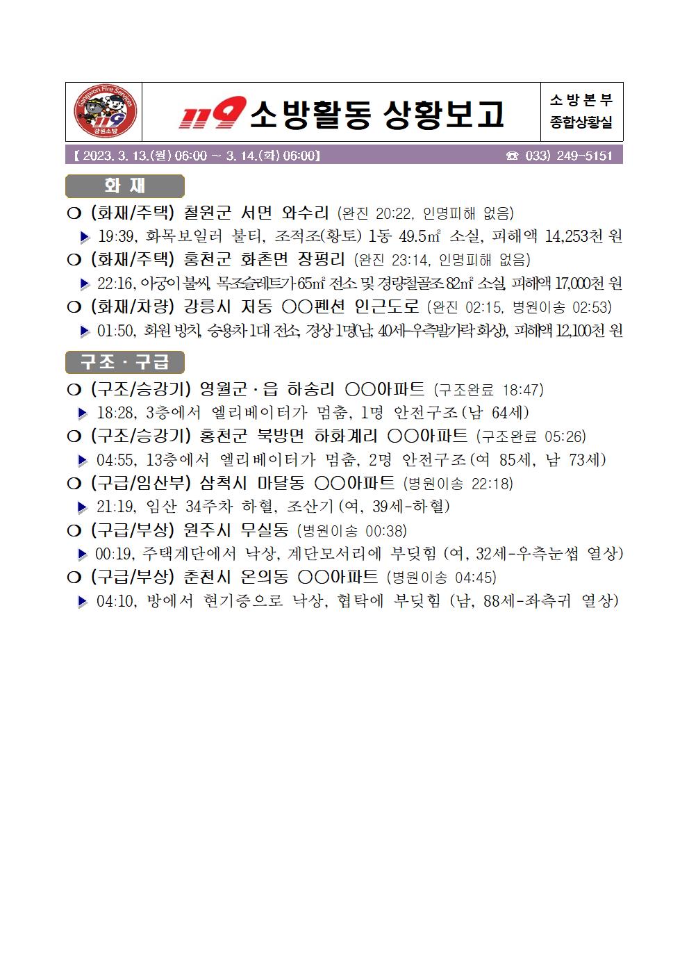 119 소방활동 상황보고(3. 14. 화) 06:00