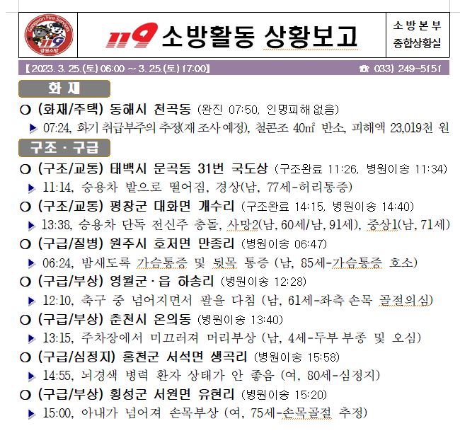 119 소방활동 상황보고(2. 25. 토) 17:00
