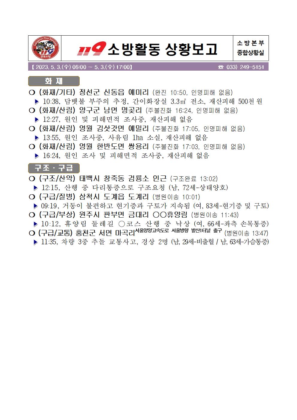 119 소방활동 상황보고(5. 3. 수) 17:00