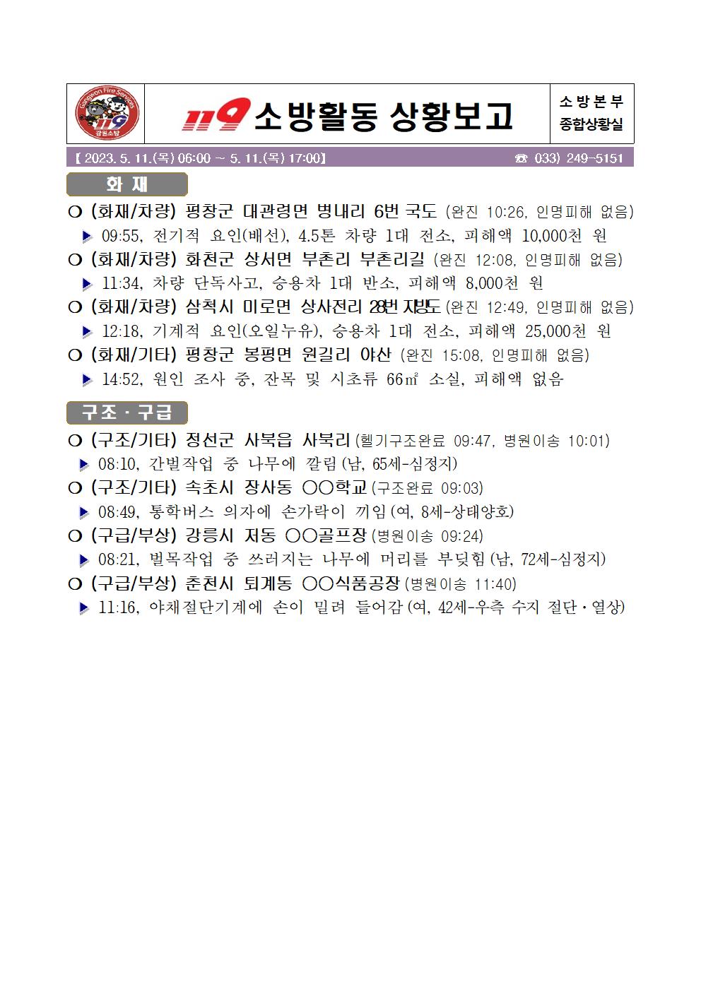 119 소방활동 상황보고(5. 11 목) 17:00