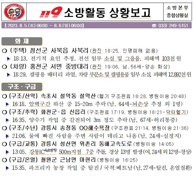 119 소방활동 상황보고(8. 6. 일) 06:00