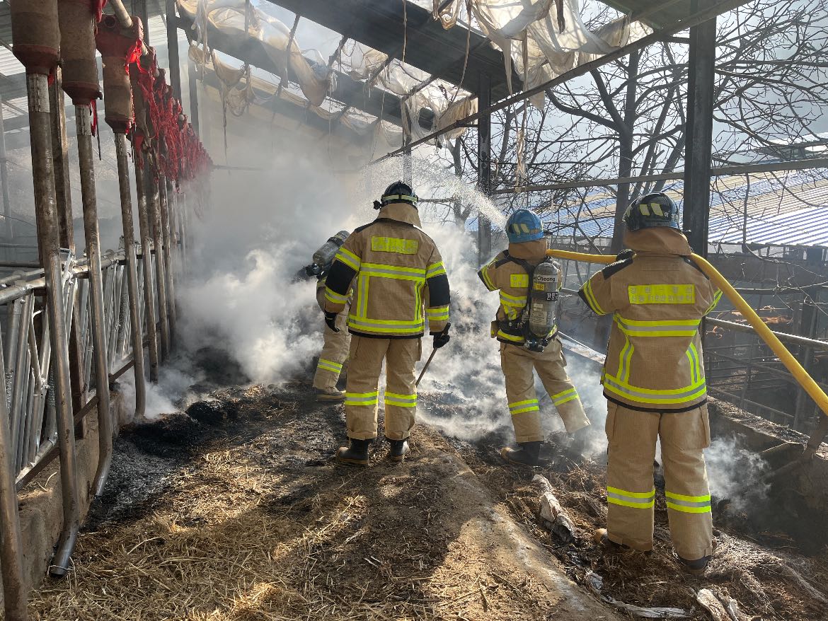 정선 신동 축사 화재 사진 1
