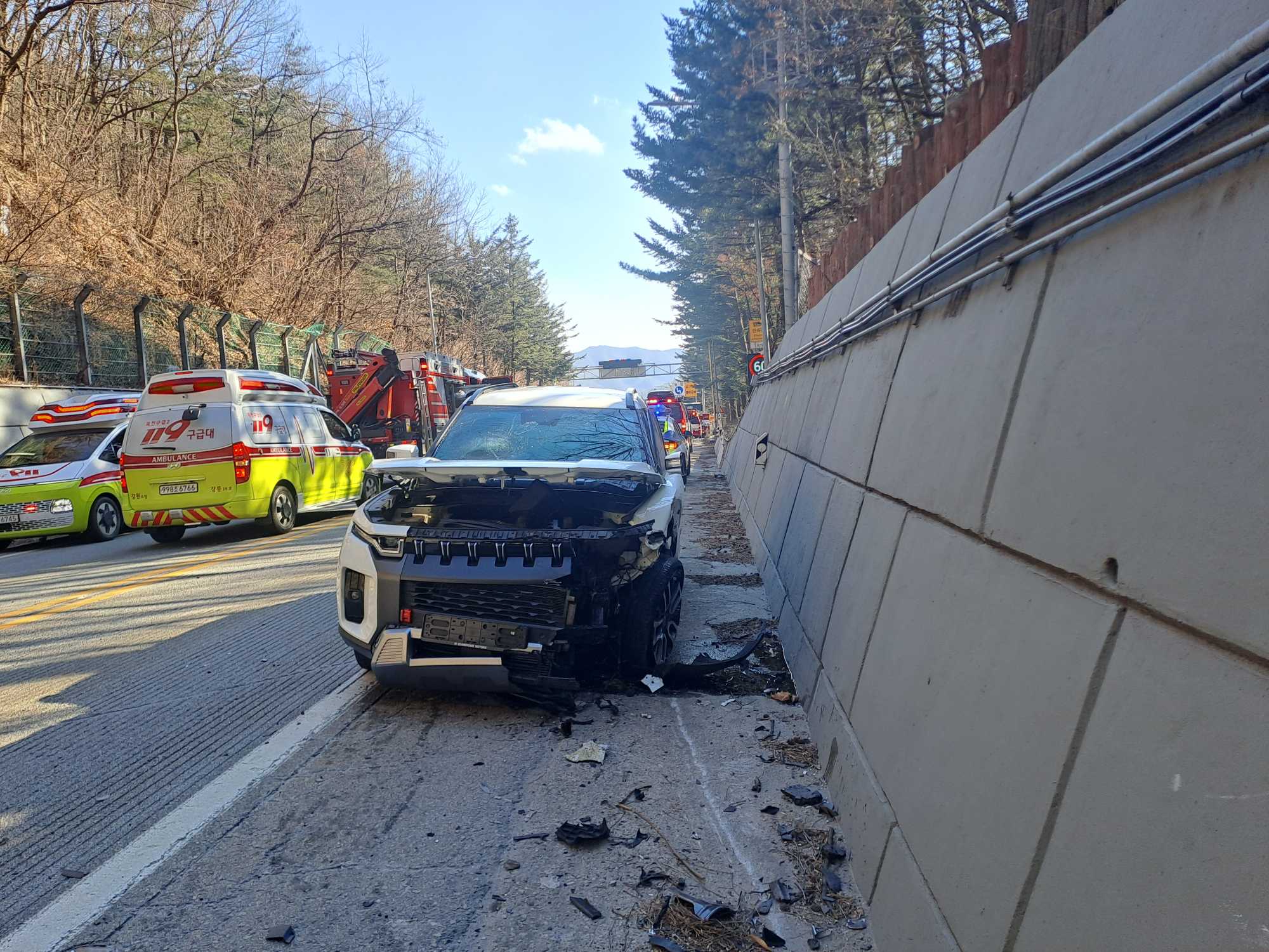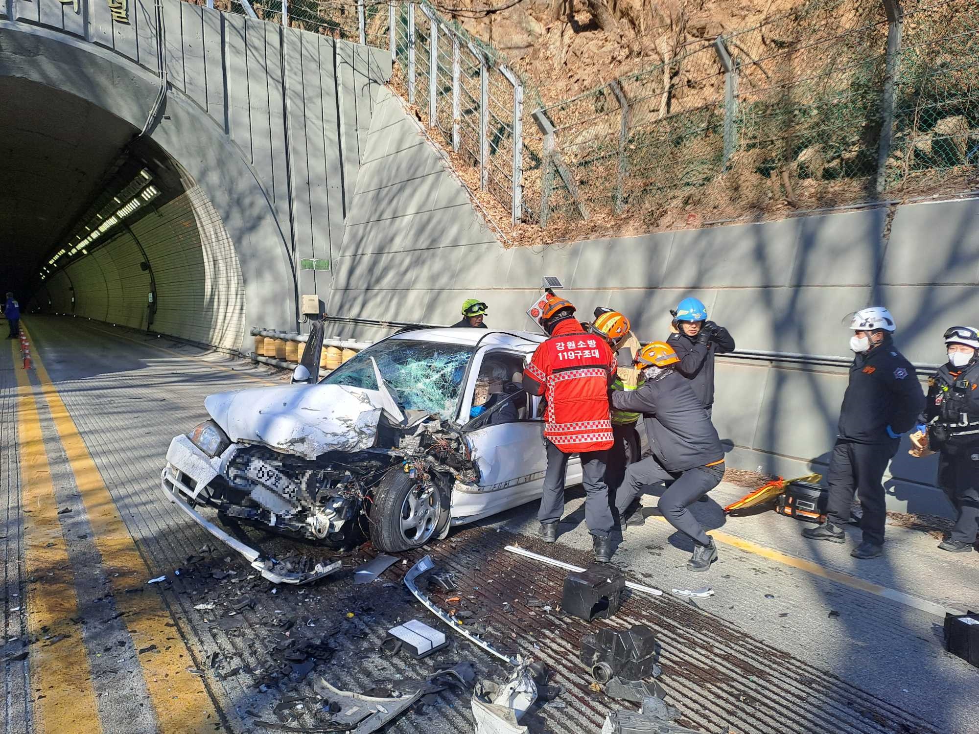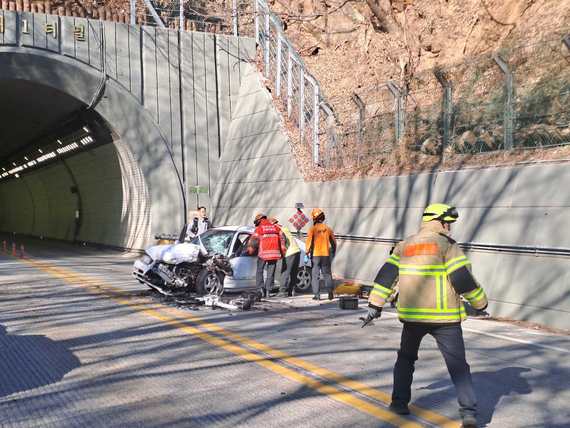 강릉 강동면 동해1터널 동해방향 교통사고 사진