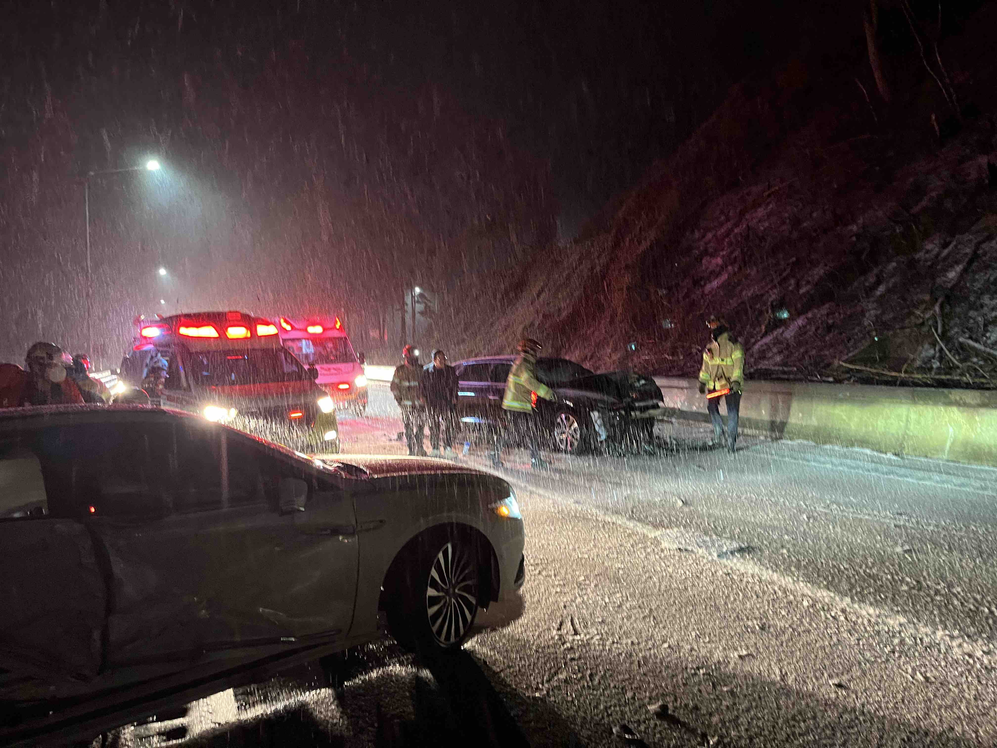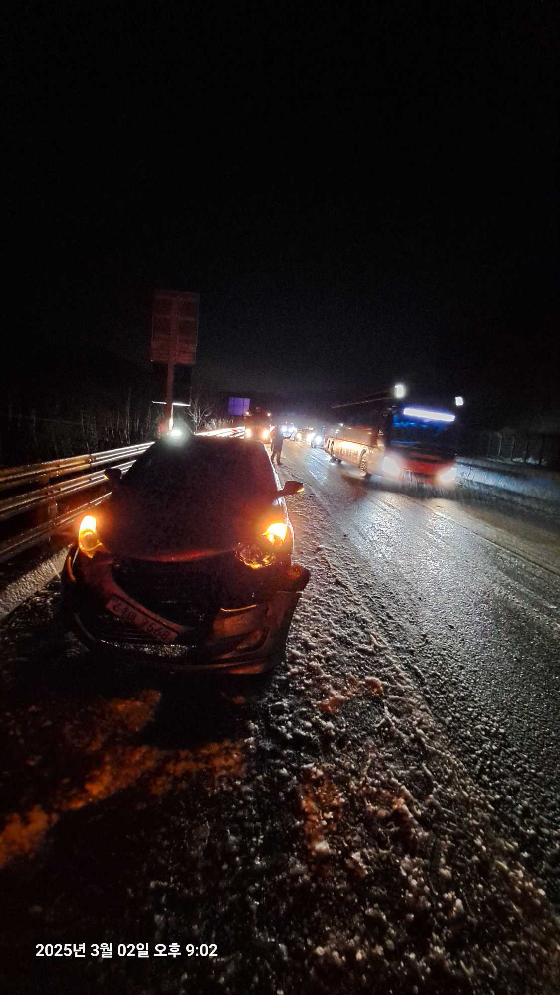 2. 3. 2.(일) 21:13 삼척 사직동 동해고속도로 눈길 추돌사고(그랜저와 링컨) / 경상 4명 / 병원이송