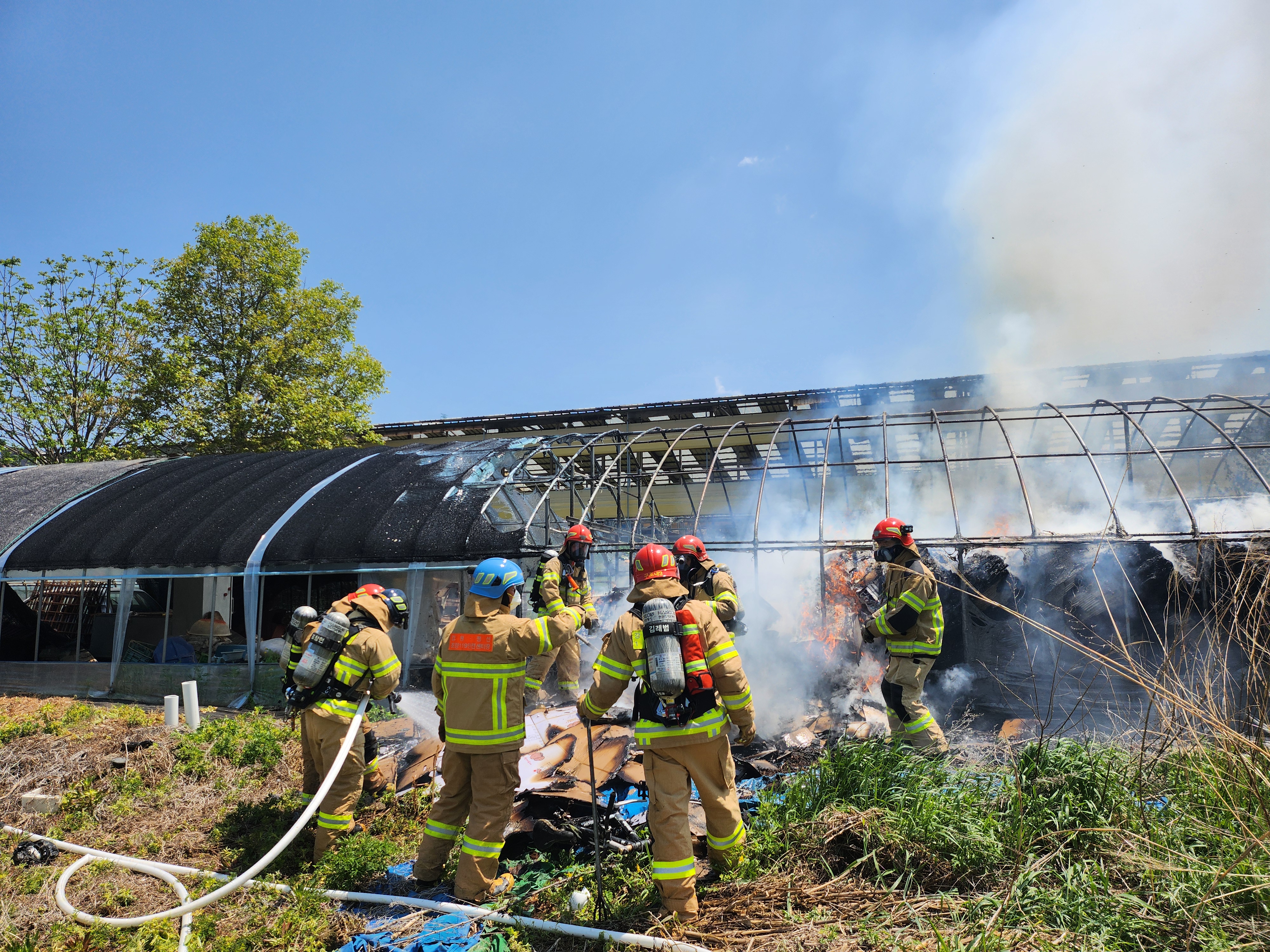5.12 월, 11:46~13:54 조사 중, 비닐하우스 반소(310㎡) 및 기자재 소실