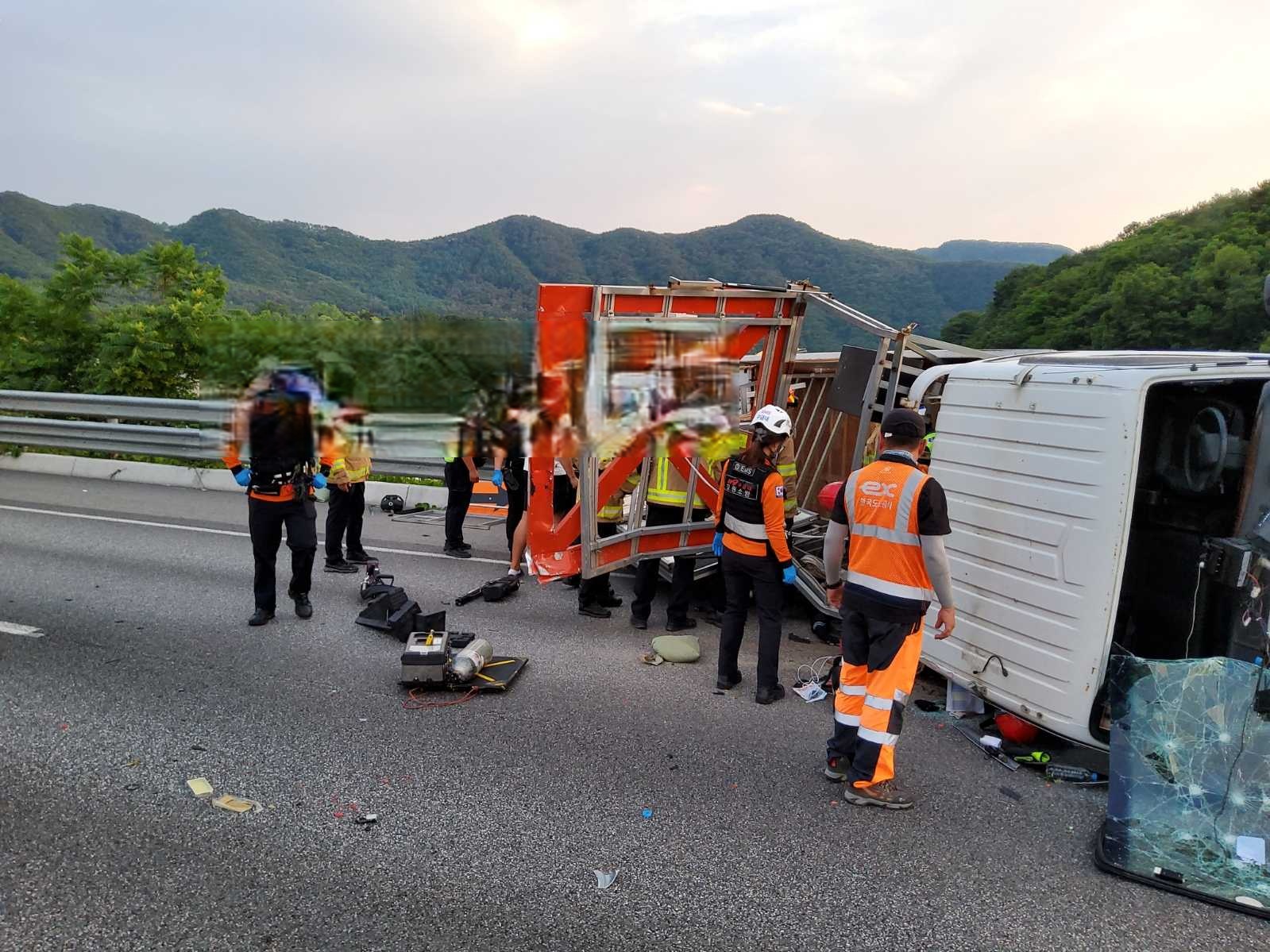 1912 홍천 북방면 중앙고속도로 화물차 전도 소방활동 사진