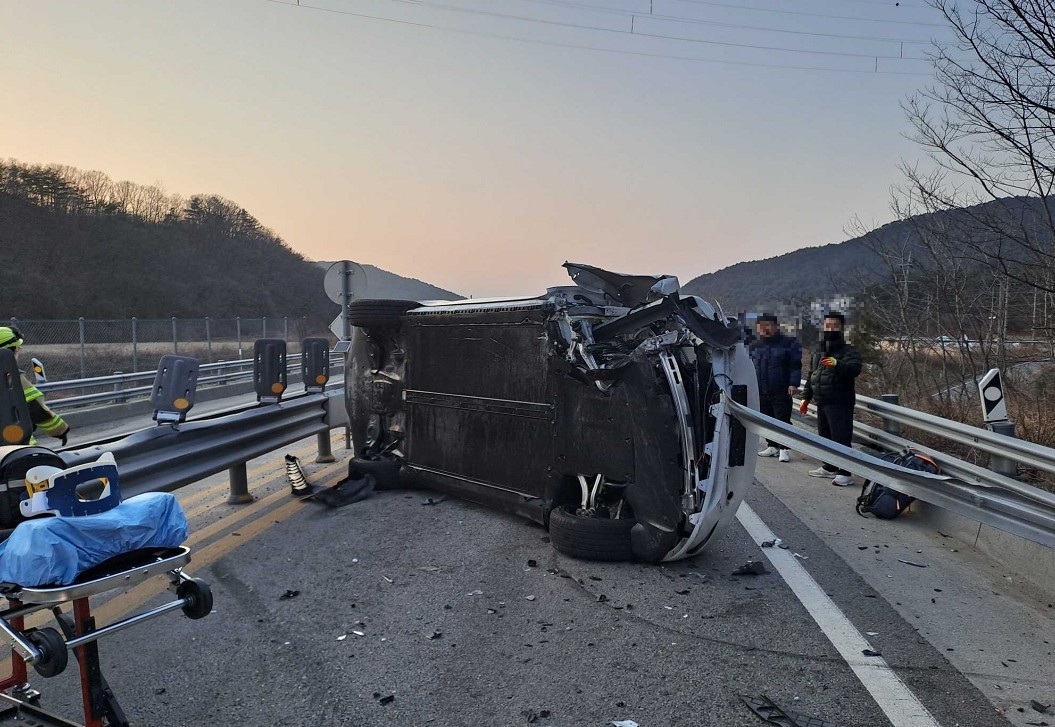 내용: 테슬라 차량 가드레일 충돌 후 전도