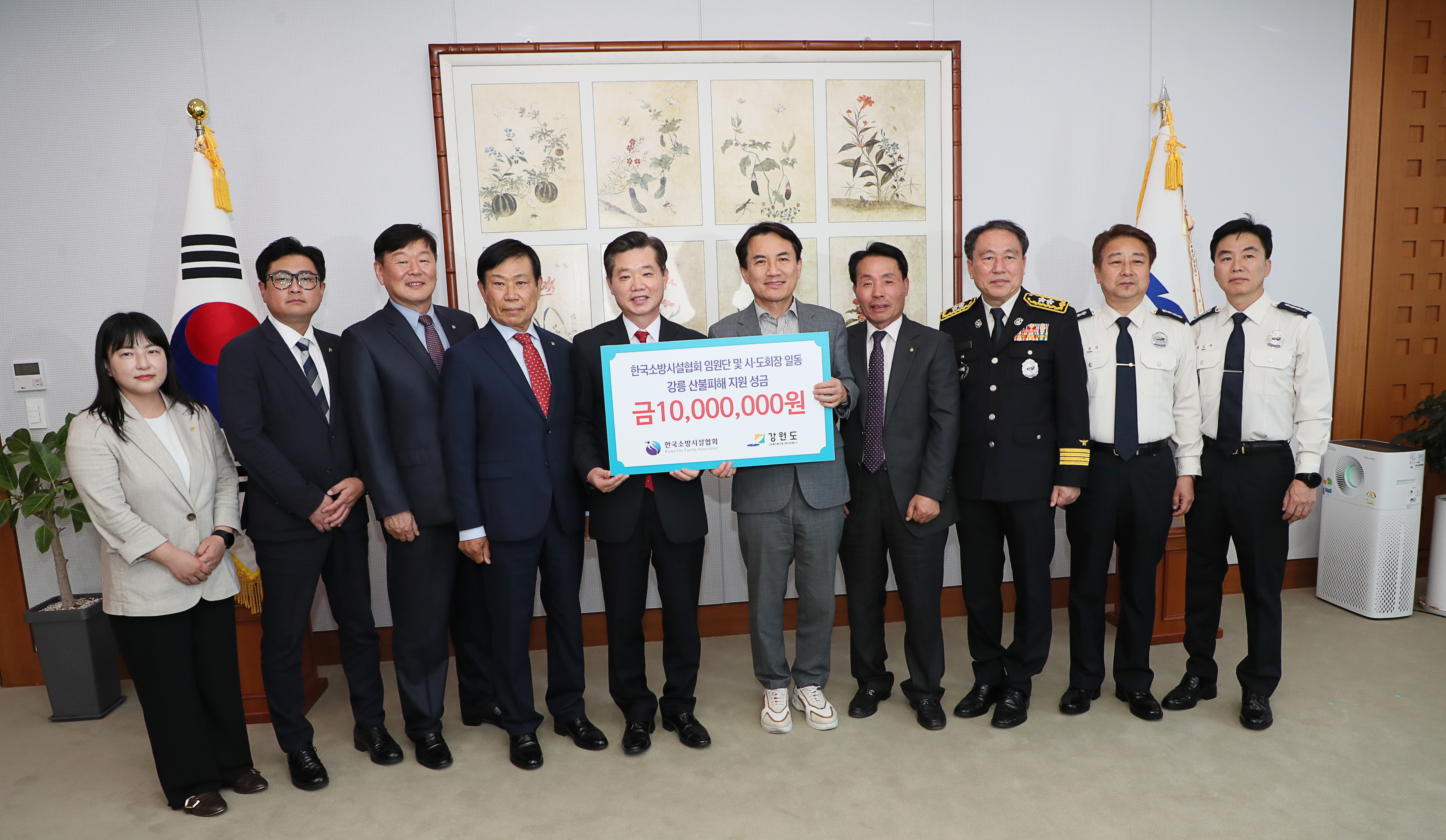 한국소방시설협회 강원도소방본부 방문 산불피해 성금 기탁