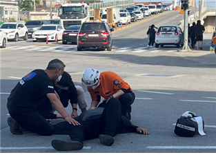 손영호 소방장은 지난 5월 14일(토) 16시 55분 경 강릉시 동해상가 교차로에서 신호 대기 중 차대 오토바이 교통사고가 발생한 것을 목격했다.