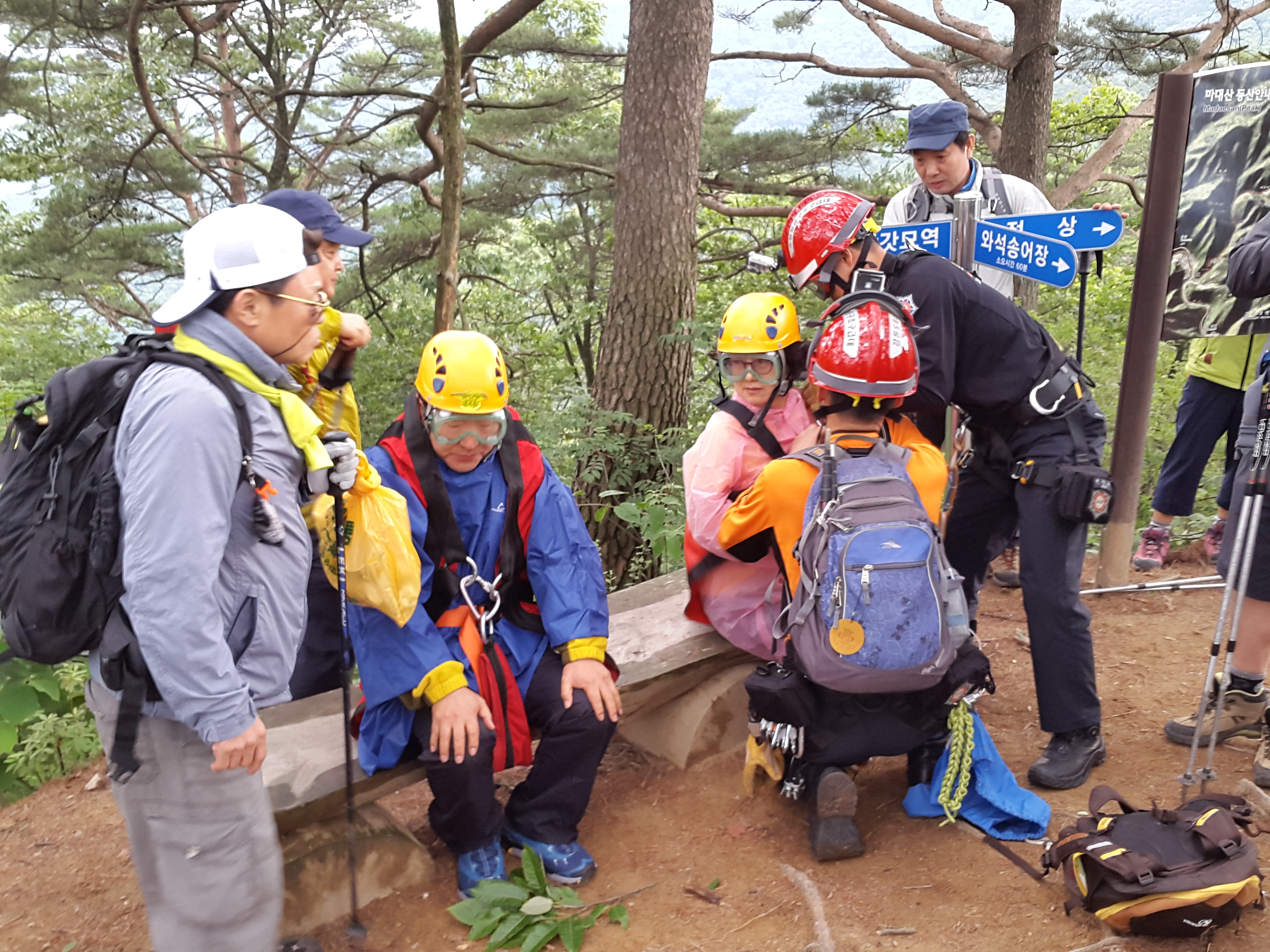 능선에 있는 처녀봉 정상 바로 밑에서 심장질환으로 응급구조 요청을 한 윤일만 입니다. 우리 구조대원님들 덕분에 환자가 회복되어 집에 함께 돌아갈 수 있어 너무나 감사합니다 하고 인사 올립니다.