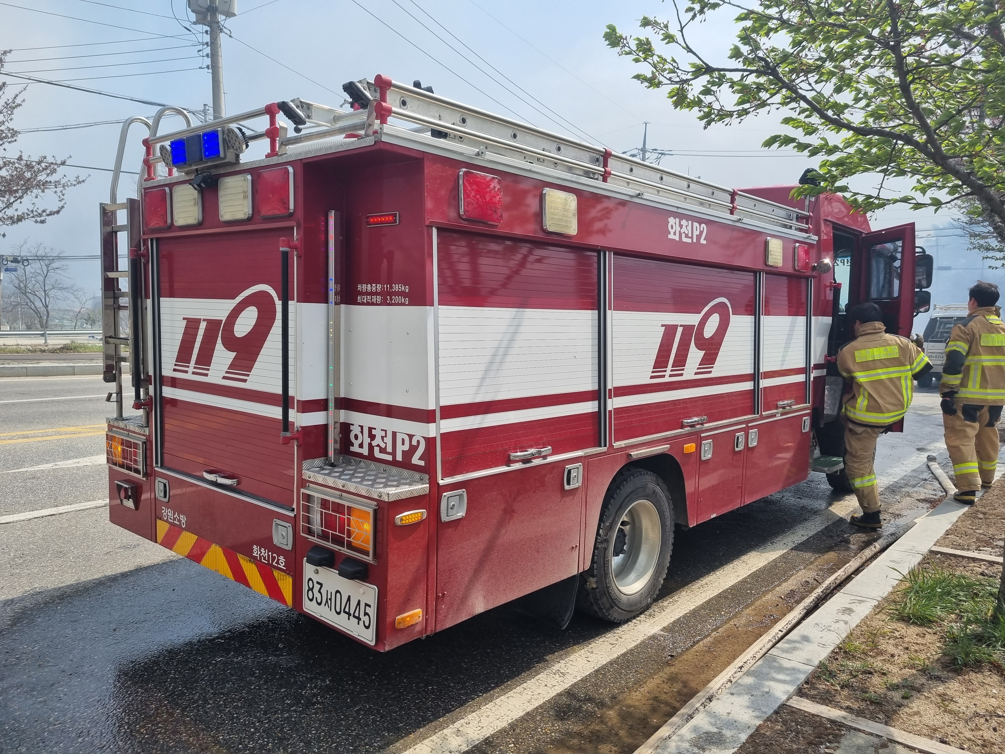 강원소방 화천12호 83서 0445 소방차에서 진두지휘 하시며 같이 애써 주셨던 소방관님들.