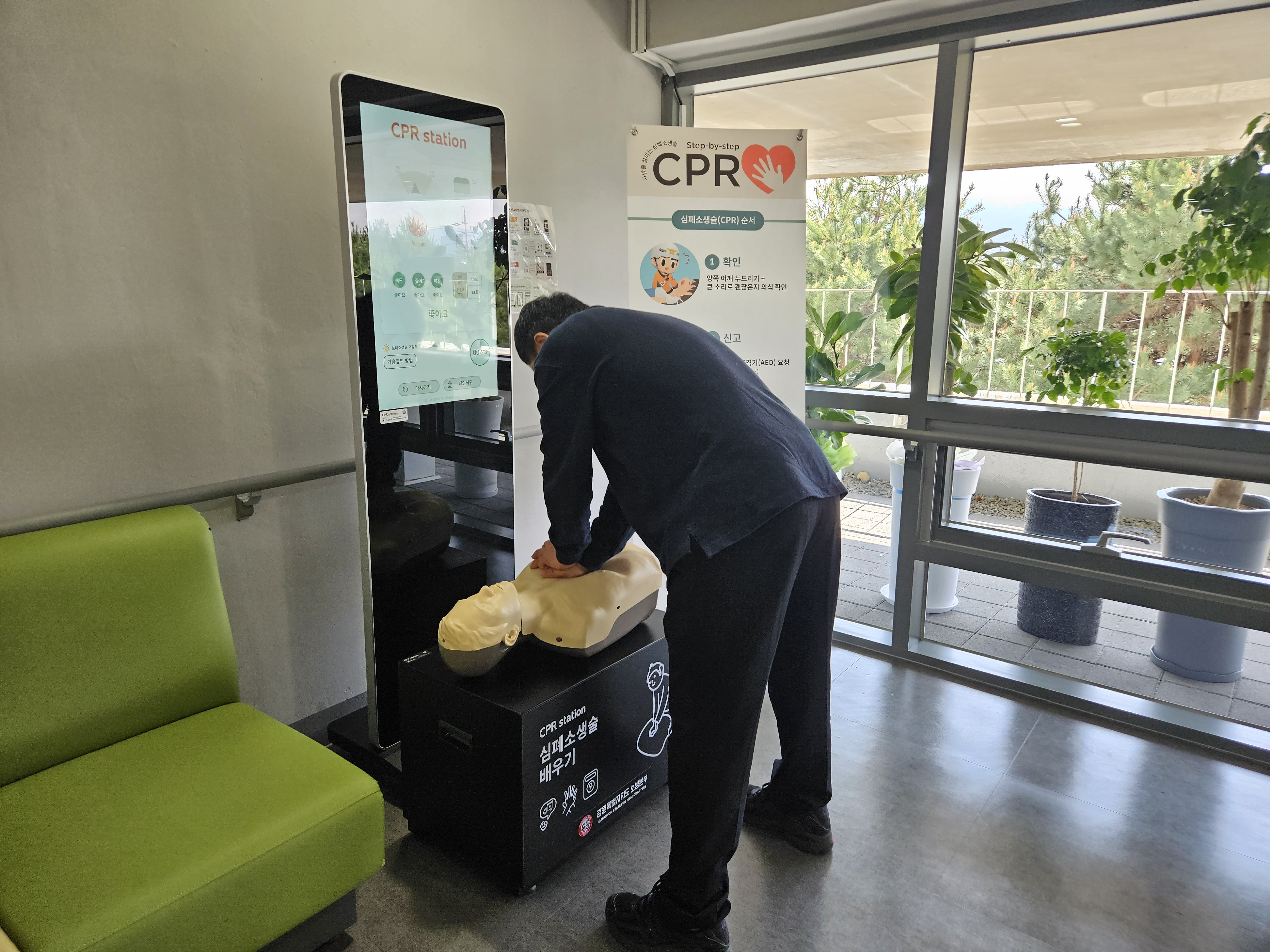 ○ 이 무인 교육장은 강사의 도움 없이도 영상을 보고 따라하며 심폐소생술을