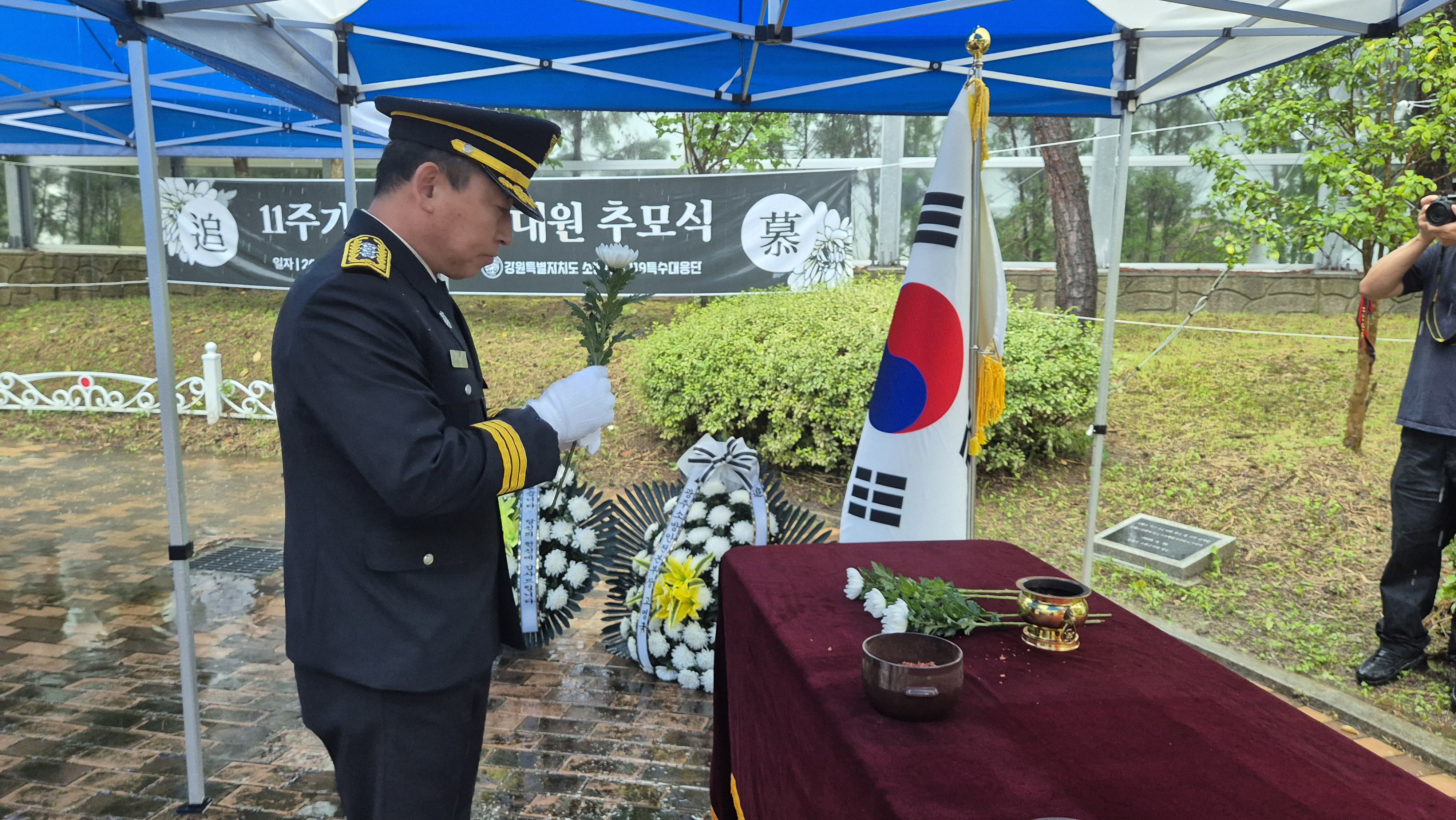 ◯ 강원특별자치도 소방본부(본부장 김승룡)는 이날 추모공간에서 순직한 5인의 소방관을 기리기 위한 ‘세월호 소방헬기 추락사고 순직 소방공무원 11주기 추모식’을 거행했다고 밝혔다.