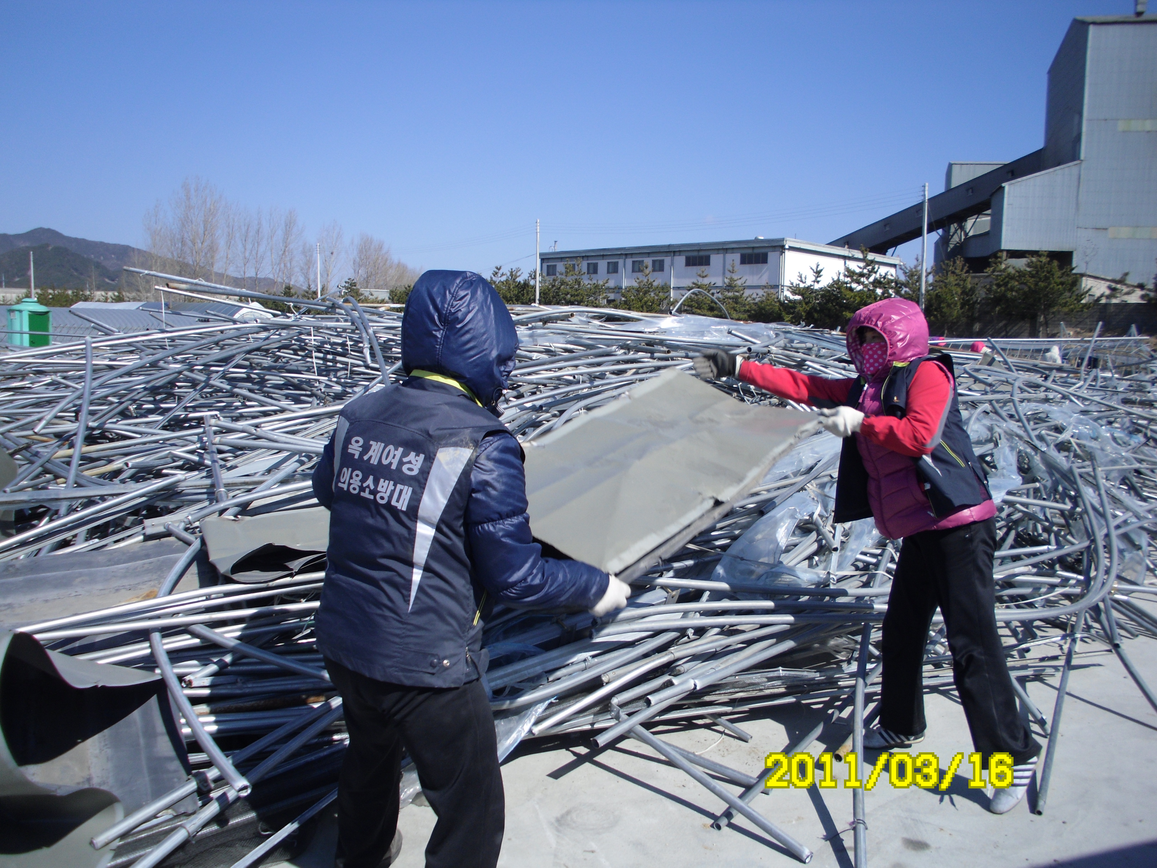 폭설로 무너진하우스시설물 제거작업을 마무리하였습니다.