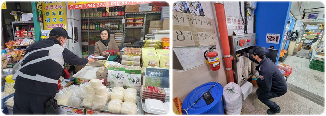 주요내용으로는 ▲ 전통시장 자율안전점검 체크리스트 및 화재예방 홍보 자료 배부 ▲ 시장 및 점포 내 화재위험요인 제거, 전기·가스시설 안전사용 당부 ▲ 전통시장 내에 설치된 소화전, 비상소화장치 사용법 교육 ▲ 겨울철 3대 전기제품 안전사용 안내·홍보 ▲ 옥내소화전 사용설명서 한글·외국어 동시표기 안내 등 이 있다.