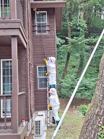 본문 시작연일 낮 기온이 30℃이고, 밤에는 열대아 현상이 지속되고 있다. 기온이 상승하는 7월부터 말벌들의 활동이 왕성해지고, 특히 금년 여름은 예년보다 무더울 걸로 예상돼 말벌이 급격하게 증가하고 있다.