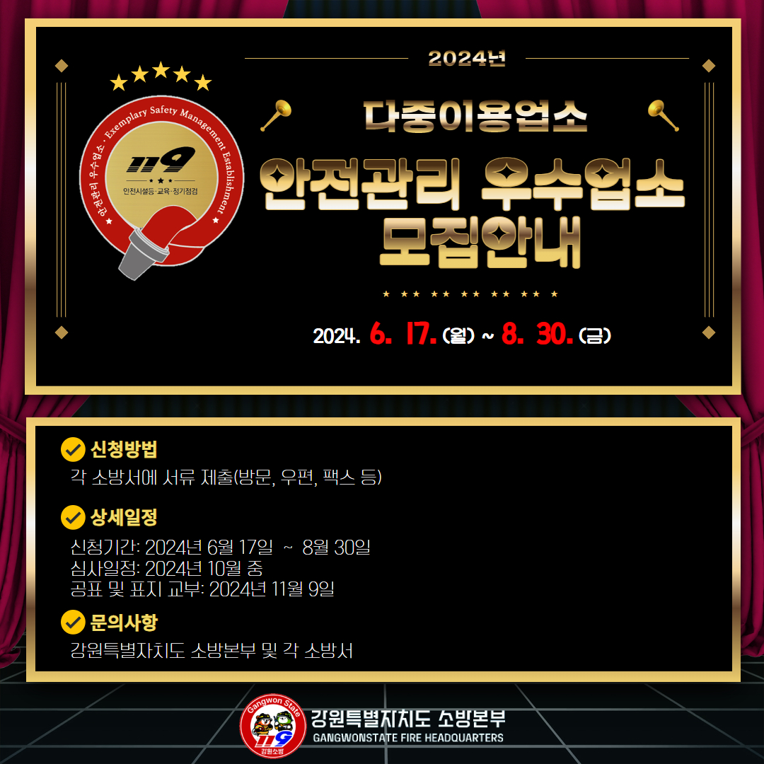 2024년 안전관리 우수다중이용업소 선정 계획 알림