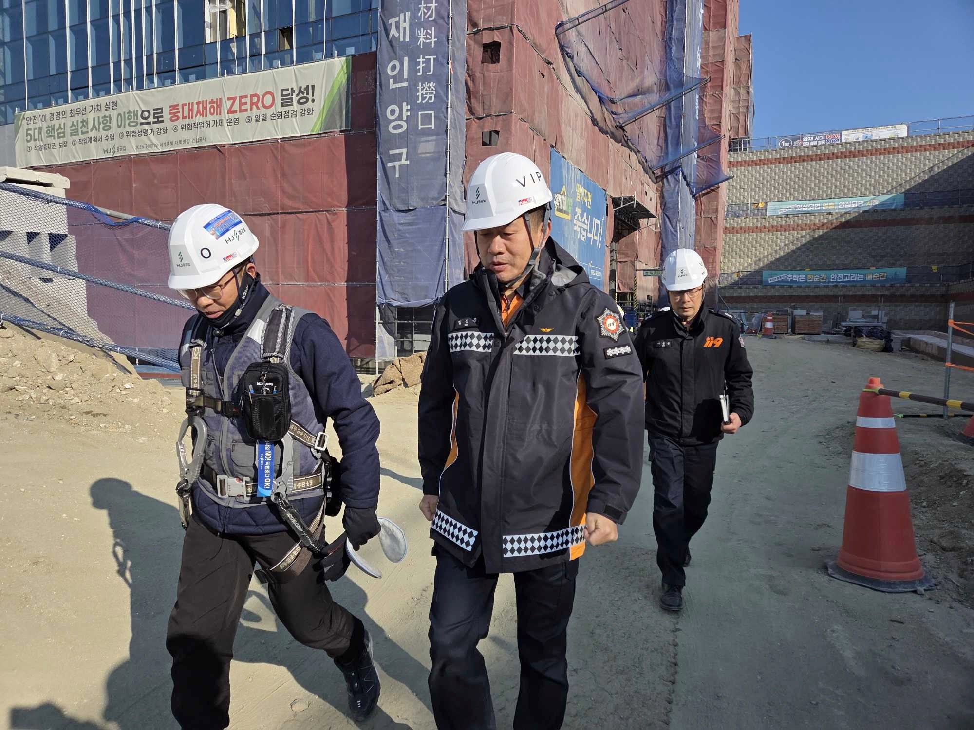 강릉소방서(서장 김진문)는 오늘 14시 강릉 ITS세계총회 대회의장 공사장 현장방문 행정지도를 실시하였습니다.