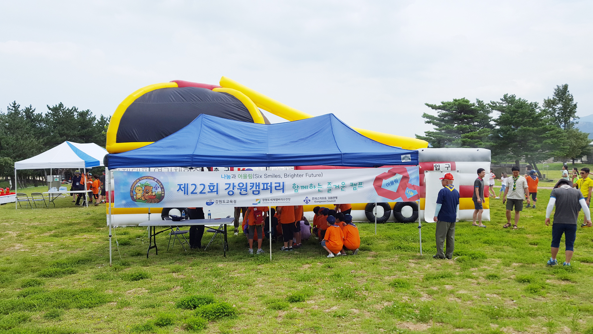 잼버리장에서 119소방안전체험장을 열었습니다.