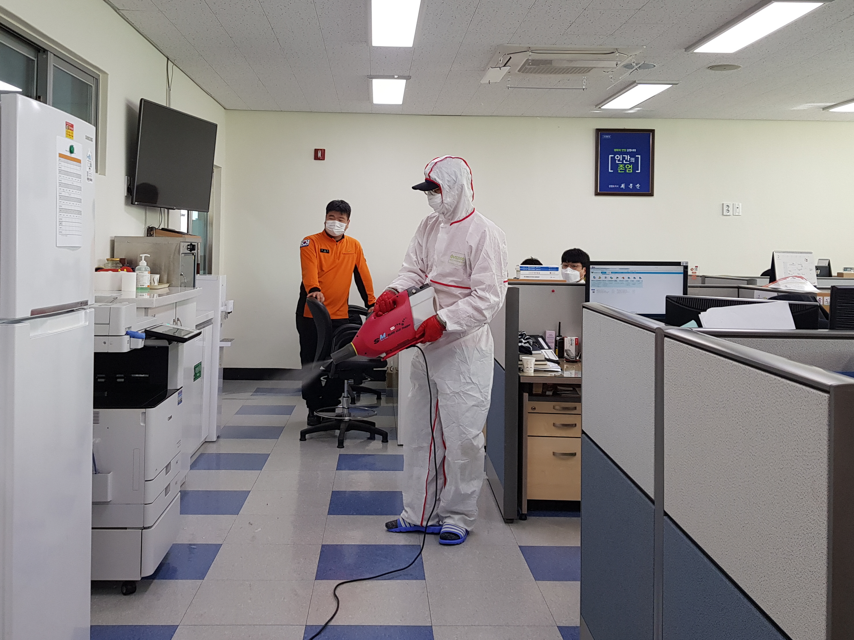 직원들의 감염예방을 위한 청사 내 방역소독 실시